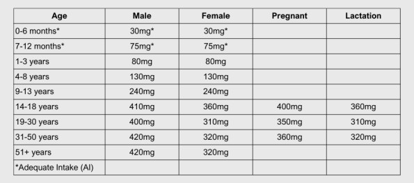 Recommended dietary allowances (RDAs) for magnesium¹⁷
