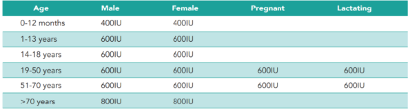 Recommended Dietary Allowances (RDAs) for vitamin D¹⁸: