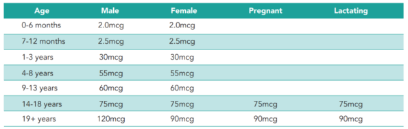 Recommended Dietary Allowances (RDAs) for vitamin K²⁵
