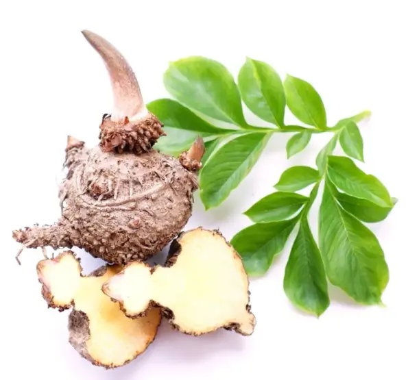 Konjac is an herbaceous perennial plant grown in Asian countries. It is originated in Southeast Asia with Latin name as Amorphophallus, or also often known as konjaku, elephant yam, devil’s tongue, snake palm, and voodoo lily. It is known for its starchy corm, a tuber-like part of the stem which grows underground. This part is then processed into glucomannan, a rich source of water-soluble dietary fibre.