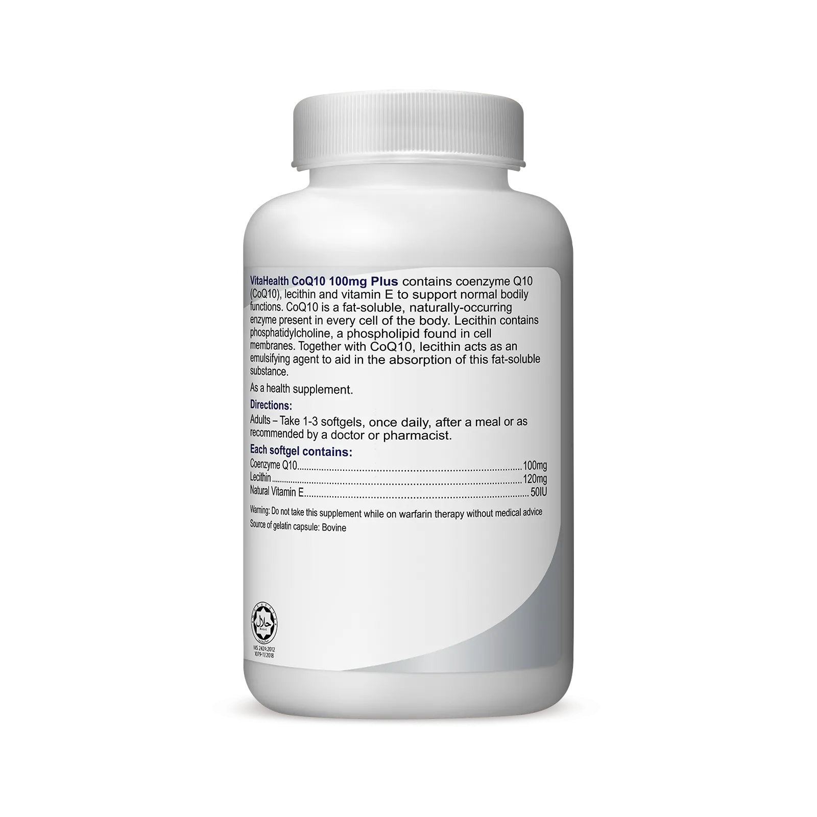 VitaHealth CoQ10 100mg Plus is scientifically formulated with coenzyme Q10 (CoQ10), lecithin and natural vitamin E to support cardiovascular and neurological health in addition to its vital role in energy production.