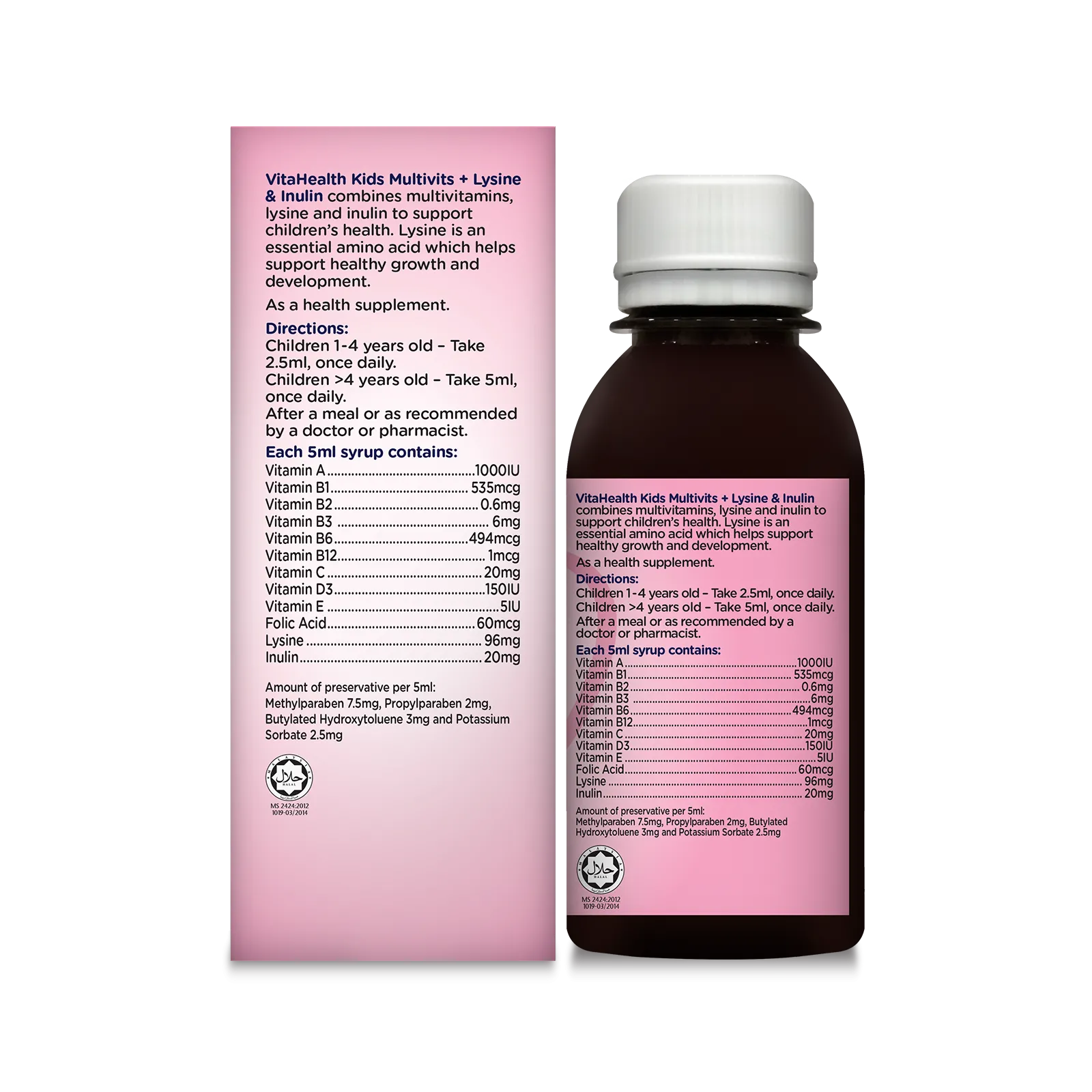 It is a comprehensive formula containing both water-soluble vitamins (B complex, vitamin C) and fat-soluble vitamins (vitamins A, D and E), fortified with lysine, an essential amino acid that cannot be synthesized in the body, which helps support healthy growth and development.