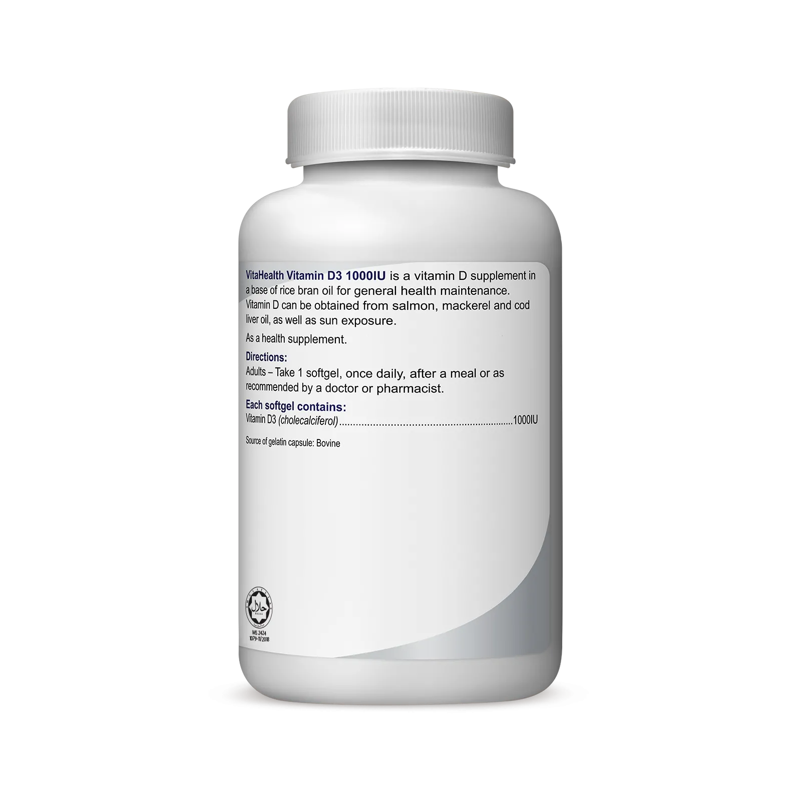 VitaHealth Vitamin D3 1000IU is a synergistic health supplement in a base of rice bran oil which is used as a bone-health stimulator and immune booster.